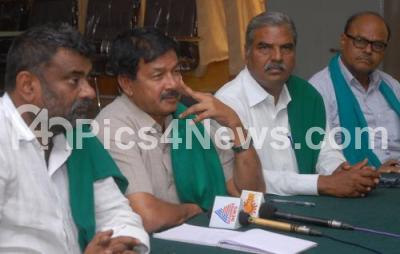 Photo Caption : MLA Puttanaiah with members of Karnataka State farmers association seen addressing a press conference on the farmers issues at Legislative House, in Bengaluru on Friday 4th March 2016
