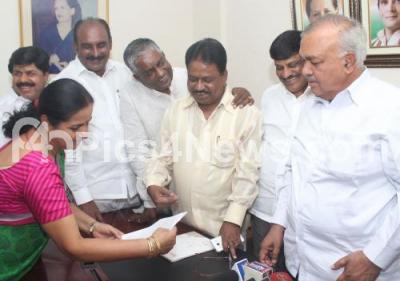 Photo Caption : Minister Ramalinga Reddy receiving a memorandum from congress workers during his visit to KPCC office, in Bengaluru on Wednesday 9th March 2016