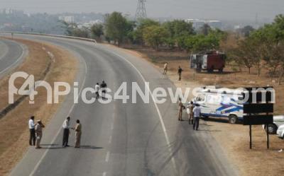 Photo Caption : Chemical laden tanker turned upside down on Nice road, causing traffic jam on NICE road near Kengeri, blocking both sides of the road, 2 fire tenders rushed to the spot along with an Ambulance and the Kengeri police to clear the traffic and ensure safety of motorists, in Bengaluru on Wednesday 9th March 2016
