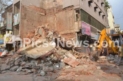 Photo Caption : An old building collapsed at Balepete during renovation work, no casualties were reported, in Bengaluru on Tuesday 15th March 2016