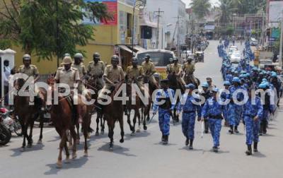 Event Description : A flag march was conducted in communally sensitive parts of Udayagiri, Narasimharaja and Mandi police station limits by the city police and Rapid Action Force (RAF) platoons to instill confidence among the residents of Mysuru City, after violence gripped the city during the bandh called by BJP to protest the murder of its party activist Raju, on Tuesday 15th March 2016
