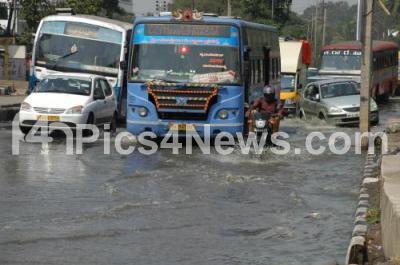 Event Description : Motorists seen forcing their way out in the drainage water clogged on the Mysore Road near Rajarajeshwari Nagar arch, in Bengaluru on Friday 18th March 2016