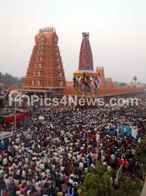 Photo Caption : Lakhs of devotees thronged the temple town of Nanjangud, also known as “Dakshina Kashi†to witness the annual Gauthama Pancha Maha Rathotsava this morning at Srikanteshwaraswamy Temple , in Nanjangud on Monday 21st March 2016