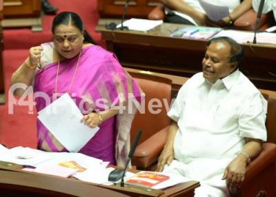 Photo Caption : MLC Vimala Gowda seen addressing the Council Session at Vidhan Soudha, in Bengaluru on Monday 21st March 2016