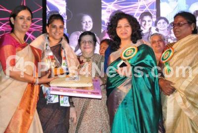 Photo Caption : Congress leader Shobha Oza with Lakshmi Hebbalkar, Rani Sathish, Mottamma and others felicitated Actress and former MP Ramya on the occasion of International Womens Day at Town Hall, in Bengaluru on Monday 21st March 2016
