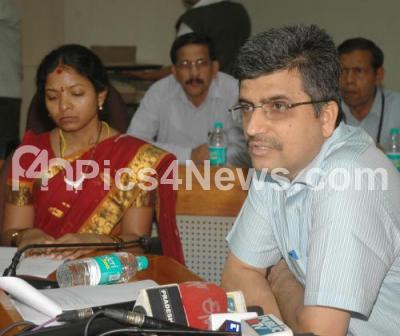 Photo Caption : Ajay Seth, Principal secretary, Department of Primary and Secondary Education briefs the media of their decision OF DPUE to conduct re examination for chemistry following a paper leak in PUC exams at press conference , at Conference Hall, Vikas Soudha also seen is Pallavi Akeerathi, director of PU Education, in Bengaluru on Thursday 24th March 2016