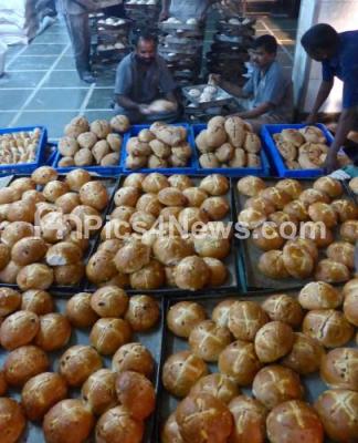 Photo Caption : Hot Cross bun preparation for Good Friday at a Bakery on Brigade Road, in Bengaluru on Thursday 24th March 2016