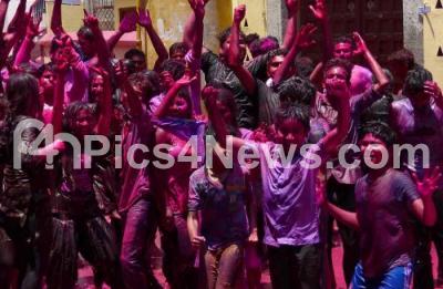 Photo Caption : People seen playing with colors on the occasion of Holi Festival, in Bengaluru on Thursday 24th March 2016