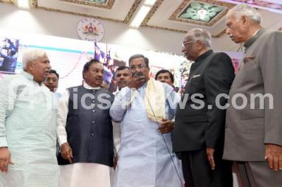 Photo Caption : CM Siddaramaiah with DH Shankarmurthy, Council Chairman, Rural Development and Panchayat Minister HK Patil, Speaker Kagodu Thimmappa and others inaugurated dedicated 1000 Drinking water units and shuddaneeru website organized by Rural Development and Panchayat Raj Department at Vidhana Soudha, in Bengaluru on Tuesday 29th March 2016
