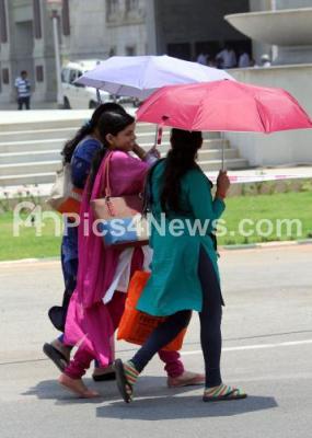 Event Description : People have started using their umbrellas frequently to save themselves from the scorching heat as Bangalore city is getting hotter day by day, in Bengaluru on Tuesday 29th March 2016