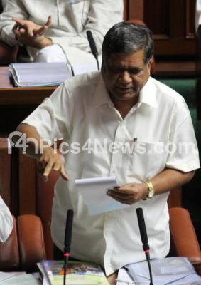 Photo Caption : Jagadeesh Shettar, Opposition leader seen addressing the Assembly Session at Vidhan Soudha, in Bengaluru on Wednesday 30th March 2016