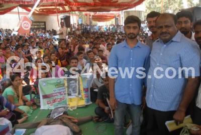 Event Description : Agriculture university students staged a protest against the Agriculture Minister Krishna Byregowda at GKVK Campus in the presence of JDS leader HD Kumarswamy, in Bengaluru on Friday 1st April 2016