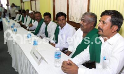 Photo Caption : Farmers seen during the high level meeting to discuss the controversial Kalasa Banduri Water Project at Conference Hall, Vidhana Soudha, in Bengaluru on Saturday 2nd April 2016
