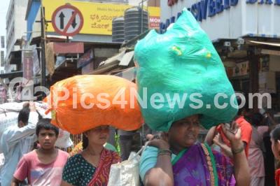 Event Description : Some people were seen using the plastic bags at the busy KR Market and have no taken the ban seriously, in Bengaluru on Tuesday 5th April 2016