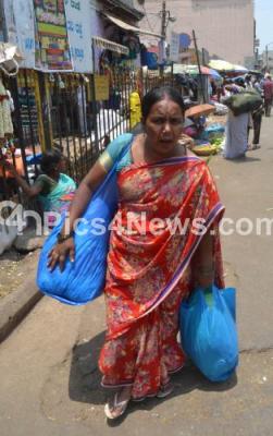 Event Description : Some people were seen using the plastic bags at the busy KR Market and have no taken the ban seriously, in Bengaluru on Tuesday 5th April 2016