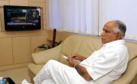 CM BS Yediyurappa watching Central Budget 2010 from his home office, in Bangalore on Friday 26th February 2010