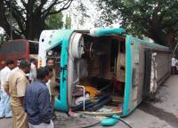 | Event Details: | A private transport bus coming from Sarabha in Shimoga District to Bangalore City met with accident after hitting the divider and toppled at Rajajinagar, ten people were injured and were being treated at Theresa Hospital, in Bangalore on Monday 2nd May 2011 |