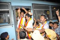 | Event Details: | Kannada Rakhana Vedike activists being arrested outside the residence of BJP MLA Lakshman Savadi, who was caught seeing obscene vedios at Assembly Session today at Vidhana Soudha, in Bangalore on Tuesday 7th February 2012 |
