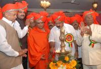 | Event Details: | Veerappa Moily, Union Minister for Corporate Affairs with Sri Sureshwarananda Bharathi Swamiji, Anil Lad, MP, Ranoji Rao Sathe, Shivaji Rao and Jadhav performing pooja on the occasion of the 385th Birth Anniversary of Chatrapathi Shivaji organised by Karnataka Kshatriya Maratha Parishat at Maratha Bhavan, in Bangalore on Sunday 19th February 2012 |