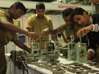 Students seen at the stalls of mechanical equipments in manufacturing industry at CNC Expo 2012 which was inaugurated today at Palace Grounds, in Bangalore on Thursday 1st March 2012