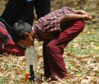 A boy trying to quench his thirst from an open tap in Cubbon Park to beat the increasing heat, in Bangalore on Monday 5th March 2012