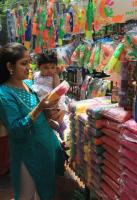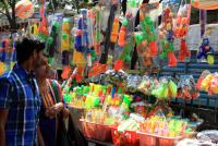 People seen buying colors, water guns and various other things related to holi festival at malleswaram, in Bangalore on Tuesday 6th March 2012
