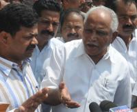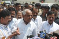 Former CM BS Yeddiyurappa addressing media after court decision regarding lokayukta case at his residence, in Bangalore on Wednesday 7th March 2012