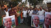 Supporters of Former CM BS Yeddyurappa celebrating as the High Court quashed the FIR filed against BS Yeddyurappa, in Mysore on Wednesday 7th March 2012