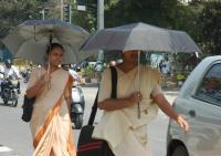 People seen using umbrellas to get protection from the scorching heat at Race Course Road, in Bangalore on Thursday 8th March 2012