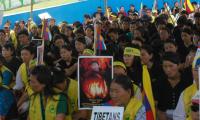 Tibetians protesting to end their crises and demanding to support them in restoration of Tibetan Independence at Freedom Park, in Bangalore on Saturday 10th March 2012