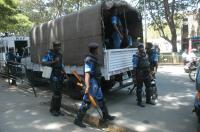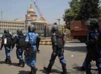 Rapid action force lined up for precautionary measures near City Civil Court for the riots happened on 2nd march, in Bangalore on Monday 12th March 2012