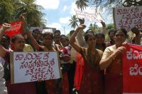 KSRTC laborers protesting to fulfill their demands at Shantinagar Bus depot, in Bangalore on Tuesday 13th March 2012