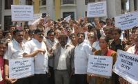 | Event Details: | TA Sharavan, President, Karnataka Jewelers Association and other jewelers protesting against the Central budget 2012 that calls for a levy of excise duty, customs duty and consumer tax at Town Hall, in Bangalore on Tuesday 27th March 2012