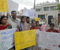 | Event Details: | Members of Campaign against Child Labour protesting in front of French Consulate on Palace road against the French diplomat, who was booked on charges of raping his three and a half year old daughter, in Bangalore on Monday 18th June 2012 |