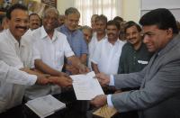| Event Details: | DH Shankar Murthy seen submitting his nomination file for Council Chairman to V Shreesh, Secretary, Karnataka Legislative Council, in presence of DV Sadananda Gowda, Chief Minister of Karnataka, S Suresh Kumar, law Minister and others at Vidhana Soudha, in Bangalore on Wednesday 27th June 2012 |