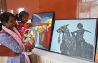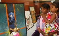 Visitors seen at Arts Exhibition, organized by Karnataka State Chitrakala Shikshakara Assocition at Nayana, in Bangalore on Monday 9th July 2012