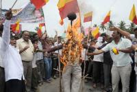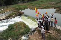Members of Kannada Vedike seen protesting to construct a dam for Varthur Lake, in Bangalore on Monday 9th July 2012