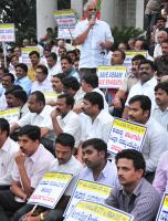 Members of BJP Bangalore City seen protesting in support of Assam at Town Hall, in Bangalore on Thursday 16th August 2012