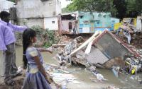 House toppled over drain, due to heavy rains at Okkalipuram, NR Colony, in Bangalore on Sunday 26th August 2012