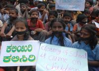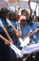 School Students protesting against report of Govind, Educationist on closing government Schools, at Town Hall, in Bangalore on Friday 14th September 2012
