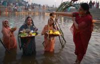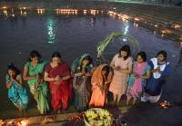 People seen performing Chhath Puja at Sankey Tank, in Bangalore on Monday 19th November 2012