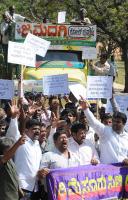 Members of Mysore City Local Lorry Owners Association marched to DC office in demand of sand permits, in Mysore on Thursday 27th December 2012