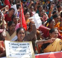 | Event Details: | Members of AITUC protesting and demanding to make job permanent for Computer operators and Health Assistants of BBMP, the protest was held at Town Hall, in Bangalore on Thursday 27th December 2012 |