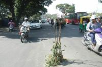 Sapling planted to cover pothole, in the middle of Cantonment Railway Station Road, in Bangalore on Tuesday 8th January 2013