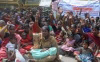 Members of Bangalore Slum Janara Sangatane and Residents of EWS protesting against BBMP occupation of EWS property, in Bangalore on Saturday 19th January 2013