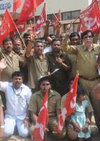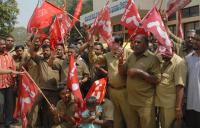 Auto Drivers Union Affiliated to CITU seen protesting to fulfill their demands at DC Office, in Bangalore on Thursday 7th February 2013