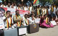 Members of Jaya Karnataka protesting to save Cauvery Water at SBM Circle, in Bangalore on Tuesday 26th February 2013