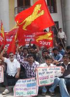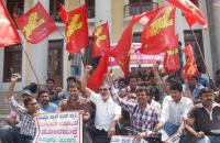 Members of Metro Cash and Carry Employees Union seen protesting to fulfill their demands at Town Hall, in Bangalore on Tuesday 12th March 2013