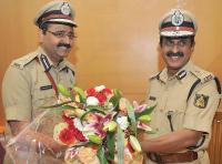 | Event Details: | Raghavendra Auradkar, new Bangalore City Police Commissioner taking charge from outgoing Commissioner BG Jyothi Prakash Mirji, during charge taking ceremony at Police Commissioner office, in Bangalore on Friday 5th April 2013 |