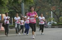 Participants in the pinkathon awareness rally on breast cancer at Sree Kanteerva Stadium, in Bangalore on Sunday 7th April 2013